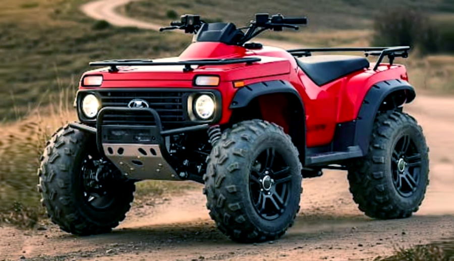 Но здесь немного другой случай. Во-первых, за основу взяли не машину, а квадроцикл. И во-вторых, «морду» взяли от классической «Нивы» — машины с одним из самых узнаваемых образов в мировом автопроме. Получилось на редкость удачно: канонический передок внедорожника сочетается с «квадриком» как родной.
