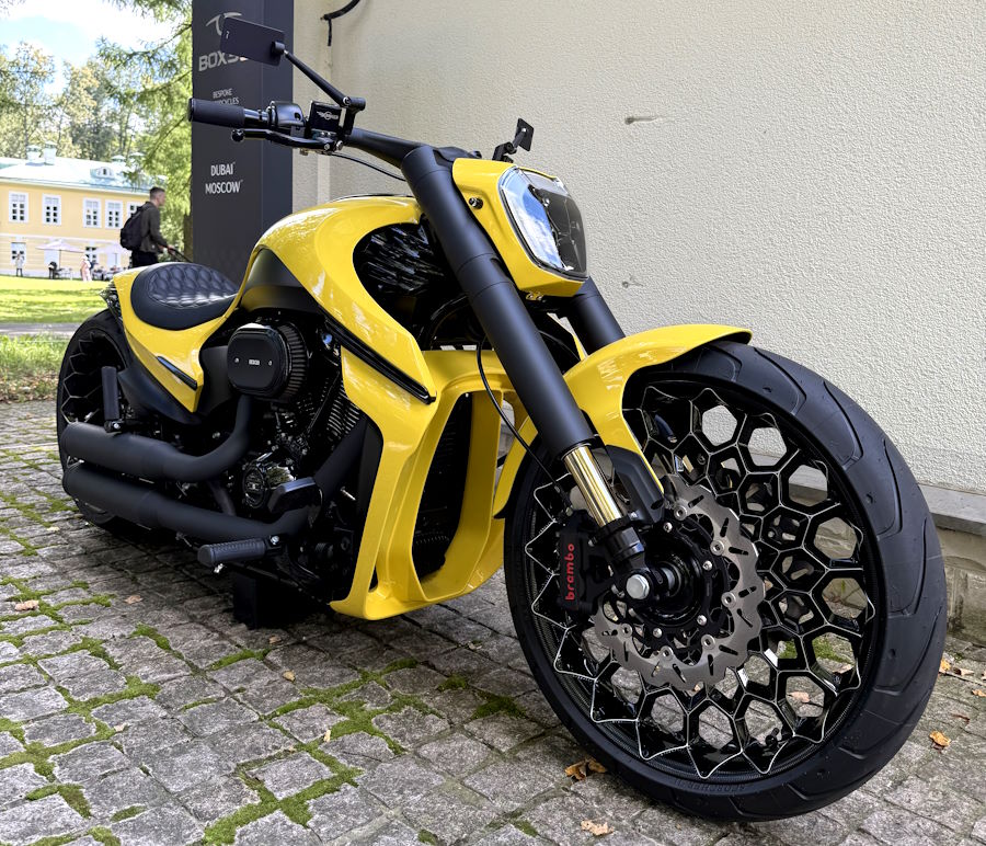 Это по-прежнему штучное производство, но теперь у компании Box39 есть шоу-румы в Москве и Дубае, где можно приобрести байк из наличия. На автофестивале в Подмосковье показали эффектный мотоцикл Box39 Giotto Altre.