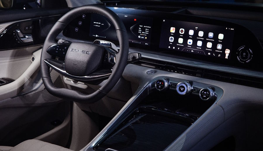 Цифровая панель: Центральным элементом стал сдвоенный изогнутый дисплей с диагональю 24,6 дюйма на базе мощного процессора Qualcomm Snapdragon 8155, обеспечивающего мгновенный отклик.