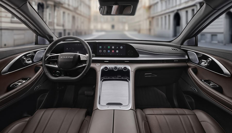 Салон EXEED TXL — пример того, как цифровые технологии интегрируются в премиальный комфорт. Архитектура передней панели построена вокруг сдвоенного экрана мультимедийной системы и приборной панели (каждый диагональю 12,3 дюйма).