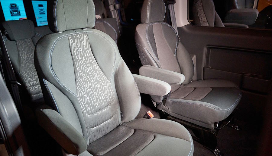 В салоне машины разместили три ряда сидений и семь мест: на среднем ряду установлены индивидуальные кресла, на последнем — трёхместный диван. При этом сиденья второго и третьего ряда можно двигать вперёд-назад или вообще снять, чтобы освободить место для объёмного груза.