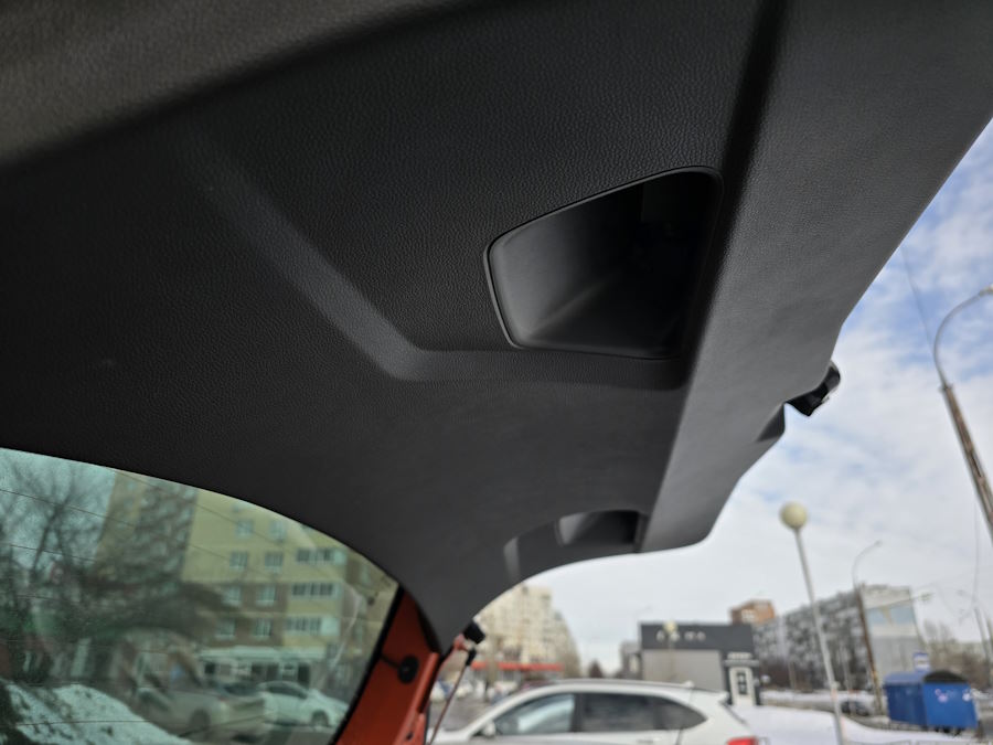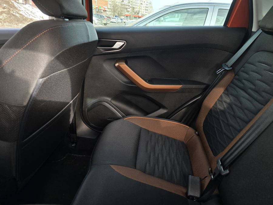Есть, правда, и исключения из этой логики. Например, здесь двухступенчатый подогрев задних сидений(в топовой версии, хотя у «Весты» он работает по схеме включено-выключено. При этом нет потолочных ручек, которые есть даже в «Гранте», хоть и простенькие. Да и пластиковых накладок на пороги (которые есть и в «Гранте», и в «Весте») не наблюдается: от уплотнителя в салоне — сразу ковролин.