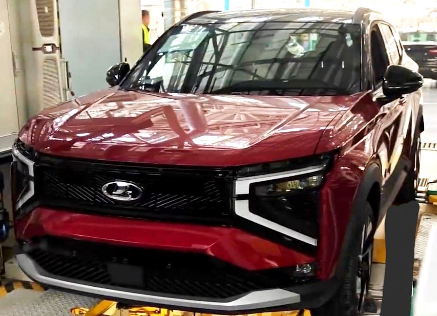 Ранее перспективный кроссовер АвтоВАЗа демонстрировался только в светлых оттенках, недавно в Тольятти были замечены прототипы тёмно-зелёного и тёмно-синего цветов. А теперь в сети появились снимки с автомобилем красного цвета, сделанные на заводе.